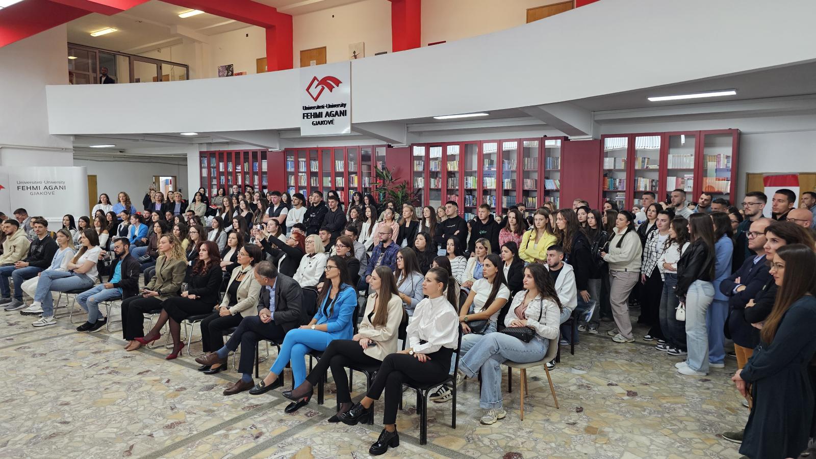 Universiteti “Fehmi Agani” në Gjakovë (UFAGJ) organizoi sot ceremoninë solemne të hapjes së vitit të ri akademik 2025–2026, duke mirëpritur studentët e rinj të vitit të parë dhe duke uruar gjithë studentët për një vit të mbarë akademik.